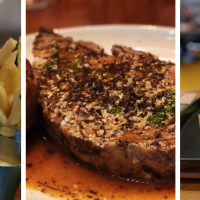 Its been almost 10 years since coming back to this steakhouse. this time to celebrate father's day for my brother. The quality hasn't changed, still amazing and still super friendly staff. The appetizer fries were the best!!! duck fat fries with awesome dipping sauces. we shared the truffle au jus prime rib 90.00 and the Porterhouse. Both were amazing and this way we get to share 3 types of meat, the NY strip, filet, and ribeye sections. sides were better than average but nothing super exciting. pork belly fried rice, truffle mac and cheese, and mushrooms. Lobster roll app was really good too, it looked more like a sushi lobster roll which caught me by surprise b/c i thought it was going to look like a roll sandwich type. I like their steak knives too, it was heavy sharp and minimalistic. I even googled their steak knifes after and they were like 170.00 for a 3 piece set.